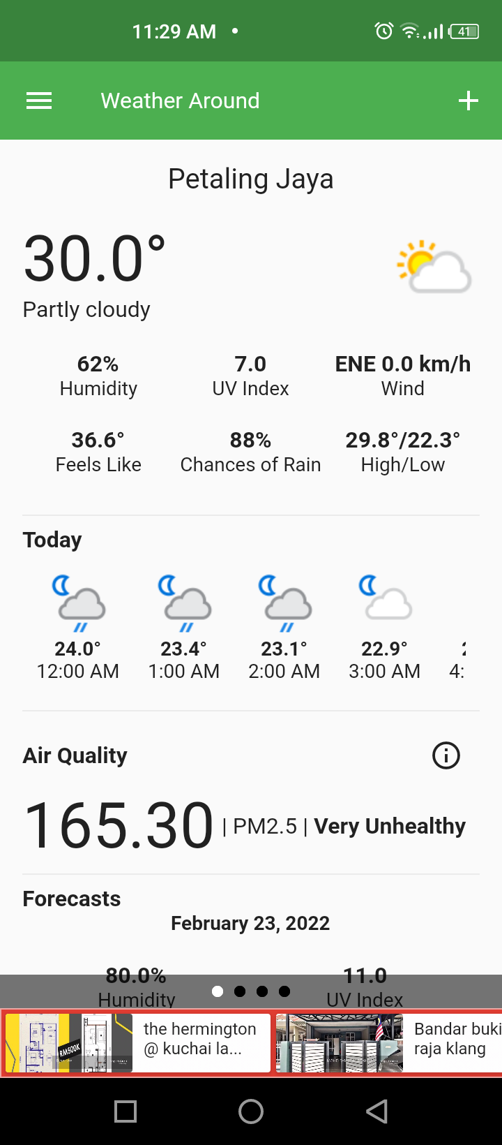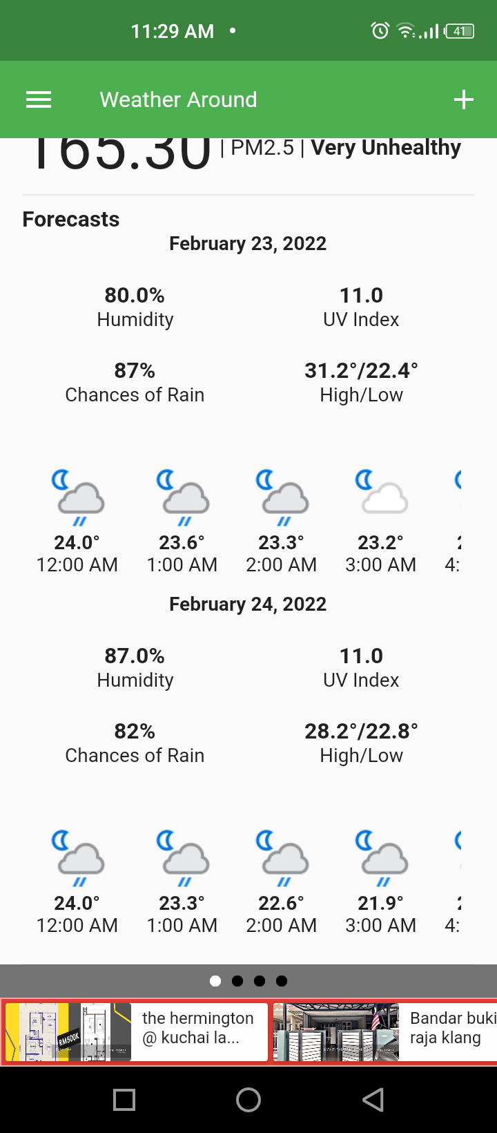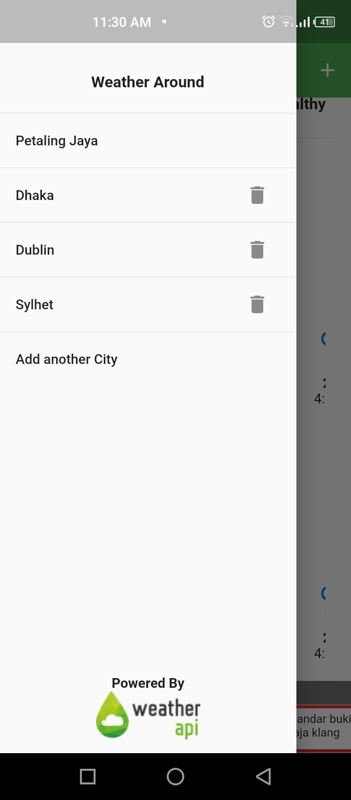 Weather Around is a mobile application developed in Flutter. Weather data is powered by Weather API. This app shows the current weather summary, 24 hours forecasts for the current day. It also shows AQI and 2 days of weather forecasts with 24 hours data as well. Users can add different cities as well from around the world.